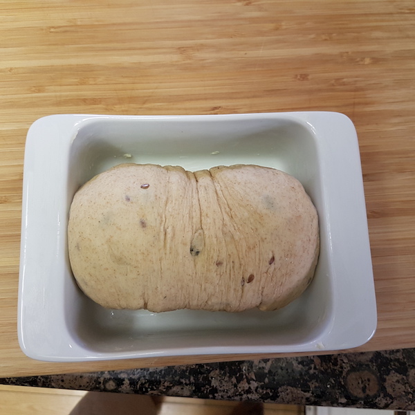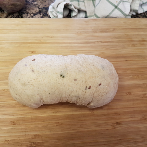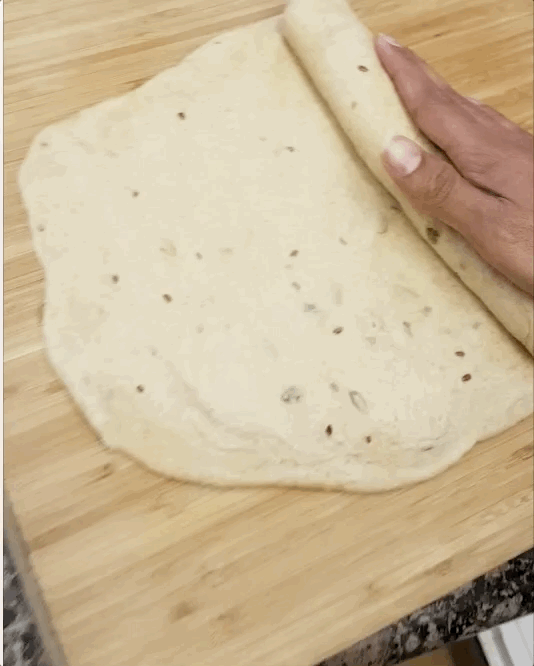 8. Turn the dough cylinder over and squish from both sides until its length matches the length of your bread pan.