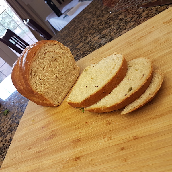 12. After the loaf has cooled, you can cut off slices at will. I typically toast the slices slightly before eating them, because I find this improves the taste.