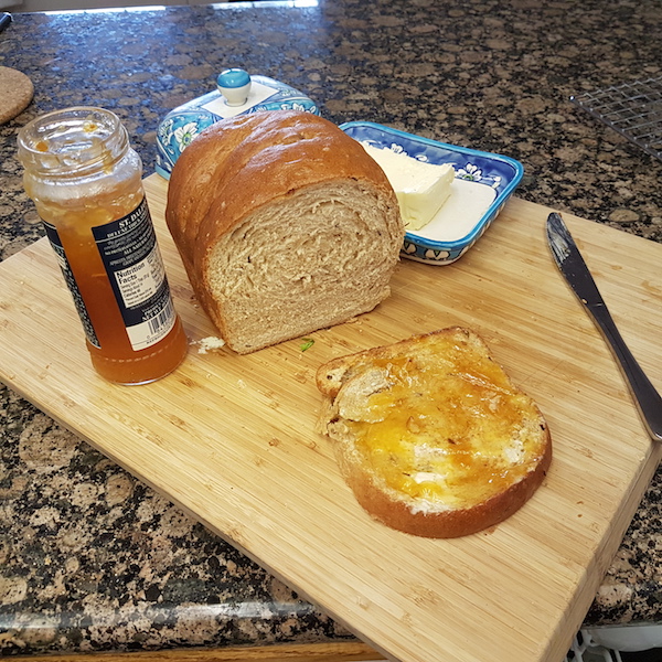 13. Below, I’m enjoying the toasted slice with butter and apricot spread. Yum!