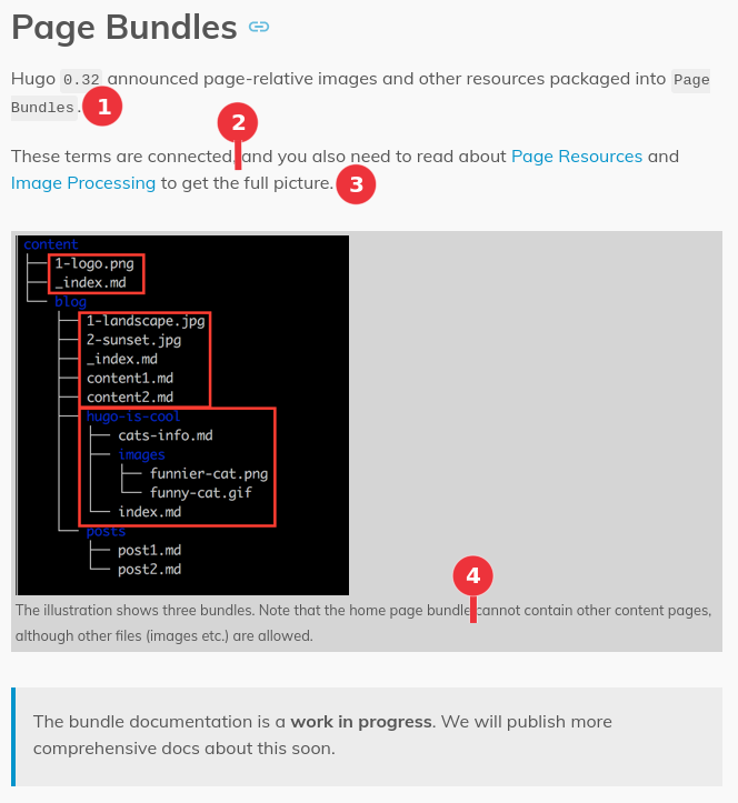 Note: The Content Organization page does state that “The bundle documentation is a work in progress…” The thing is, the Page Bundle documentation exists.. it’s just not referenced in the section on Page Bundles. But let’s continue reading.